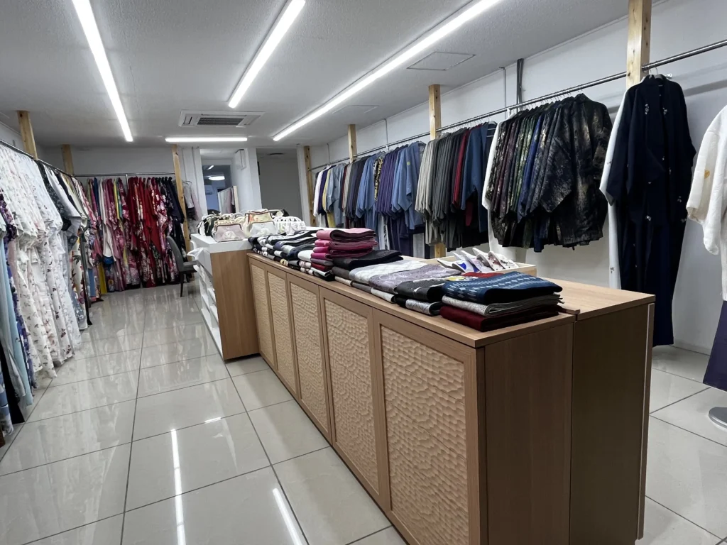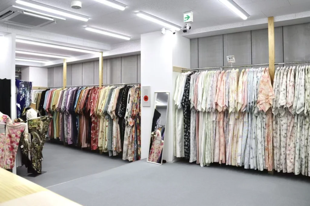 The store is large but not crowded. It has two floors with an area of 230 square meters, which is equivalent to 4 to 6 ordinary kimono experience stores. With a comprehensive range of styles, including 2,000 sets of kimonos and yukata (over 200 lace and over 200 fly-sleeved)