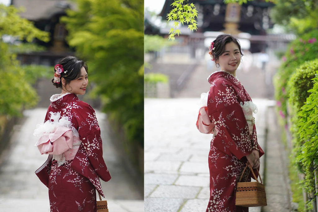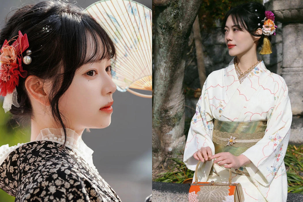 Oookini’s stylist can create a variety of styles by matching different obi (belts), tabi (socks), and hair accessories according to the occasion. Matching Nagoya obi and Kyotobukuro obi can create a formal taiko (drum roll) look; while matching Hanfu obi can create a cute and playful outfit.